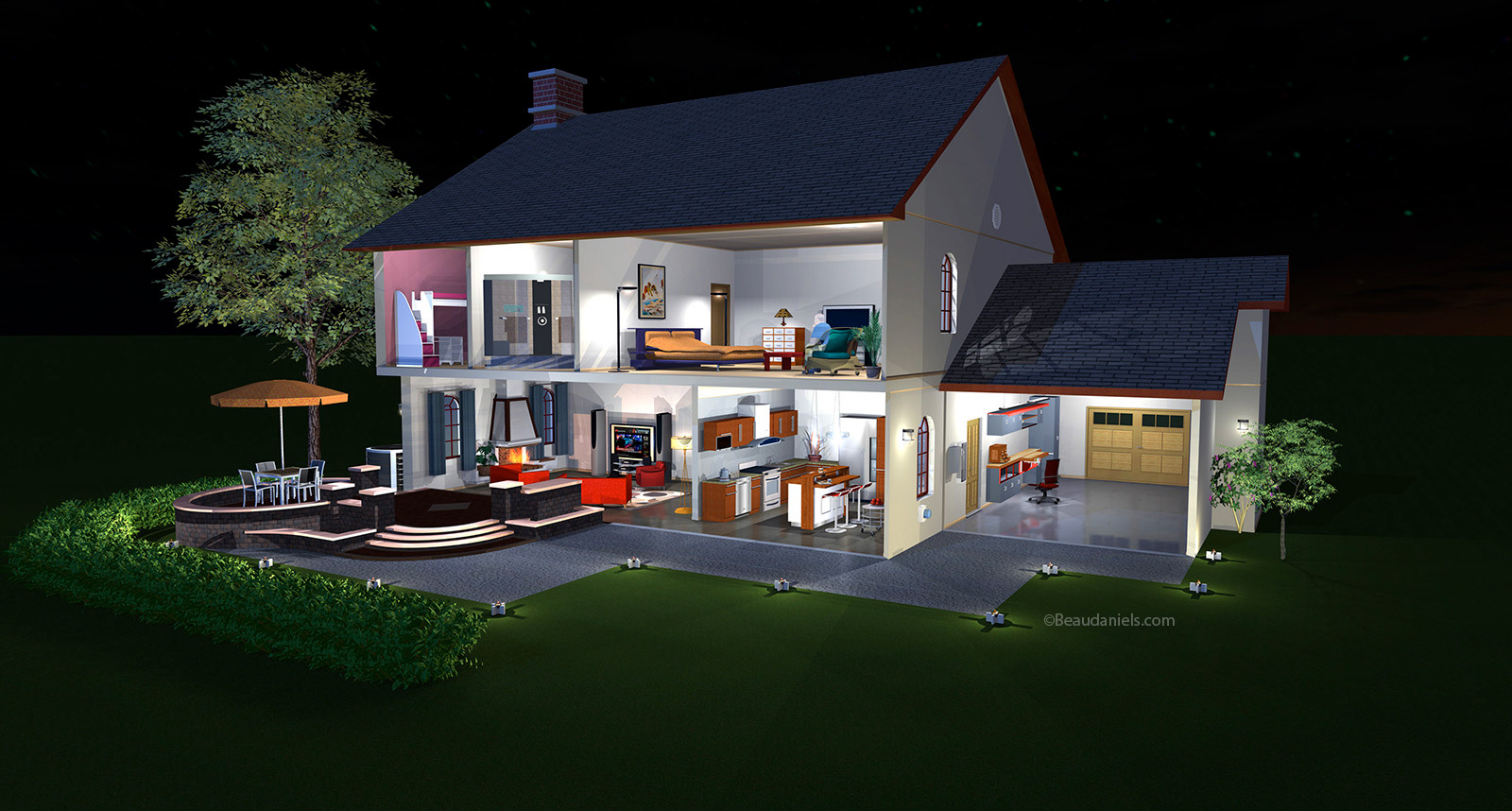 Dow Corning solar house, daytime. Part of a series of animation assets for Dow Corning.